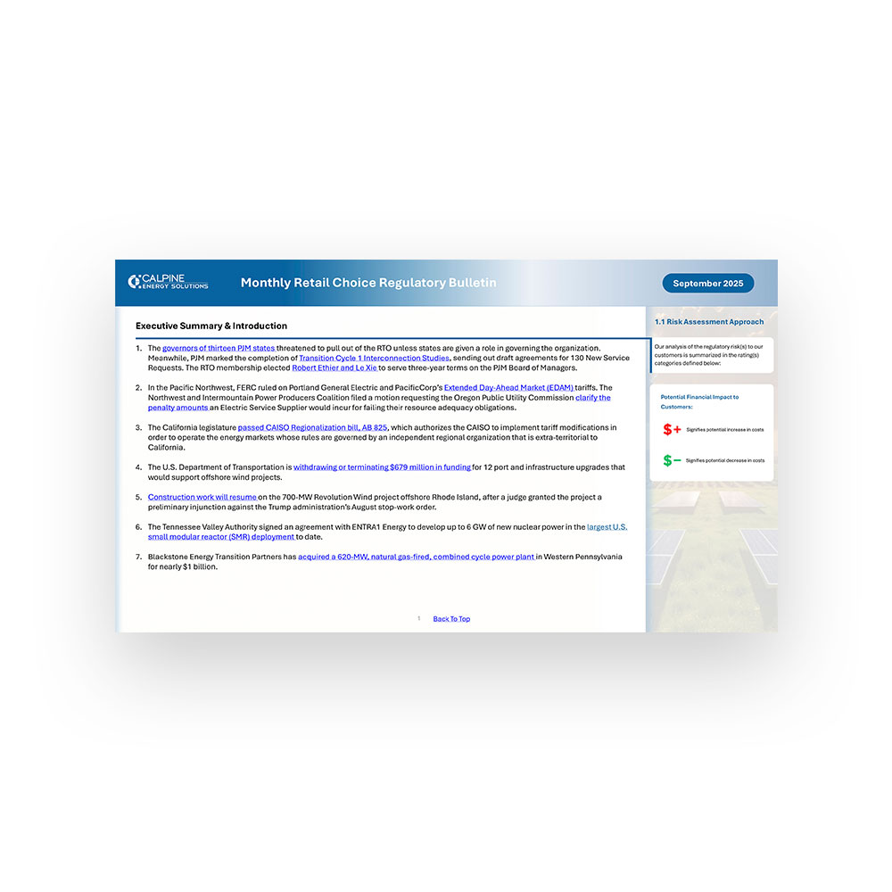 The governors of thirteen PJM states threatened to pull out of the RTO unless states are given a role in governing the organization. Meanwhile, PJM marked the completion of Transition Cycle 1 Interconnection Studies, sending out draft agreements for 130 New Service Requests. The RTO membership elected Robert Ethier and Le Xie to serve three-year terms on the PJM Board of Managers.
